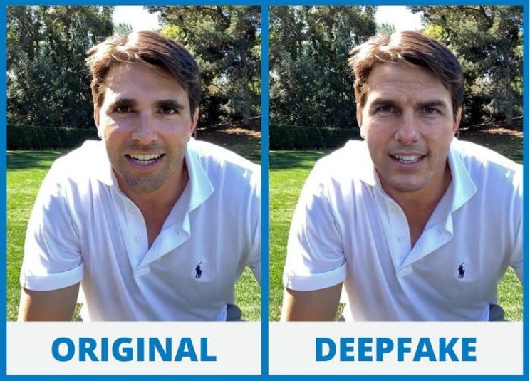 As mentioned earlier, deepfakes come in various forms, with the most well-known being 'face-swapping,' where the faces of famous or influential people are superimposed into different contexts. Below is a simple example of this technique.