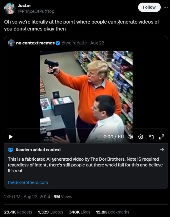While the face swap above might seem harmless, deepfake technology has advanced well beyond simple face replacements. To demonstrate just how far it has come, I’m sharing a video created by the Dor Brothers AI video production studio. They were able to produce these videos in about 7 hours—less than a typical workday. Unsurprisingly, their video went viral, gathering over 50 million views across various social media platforms.